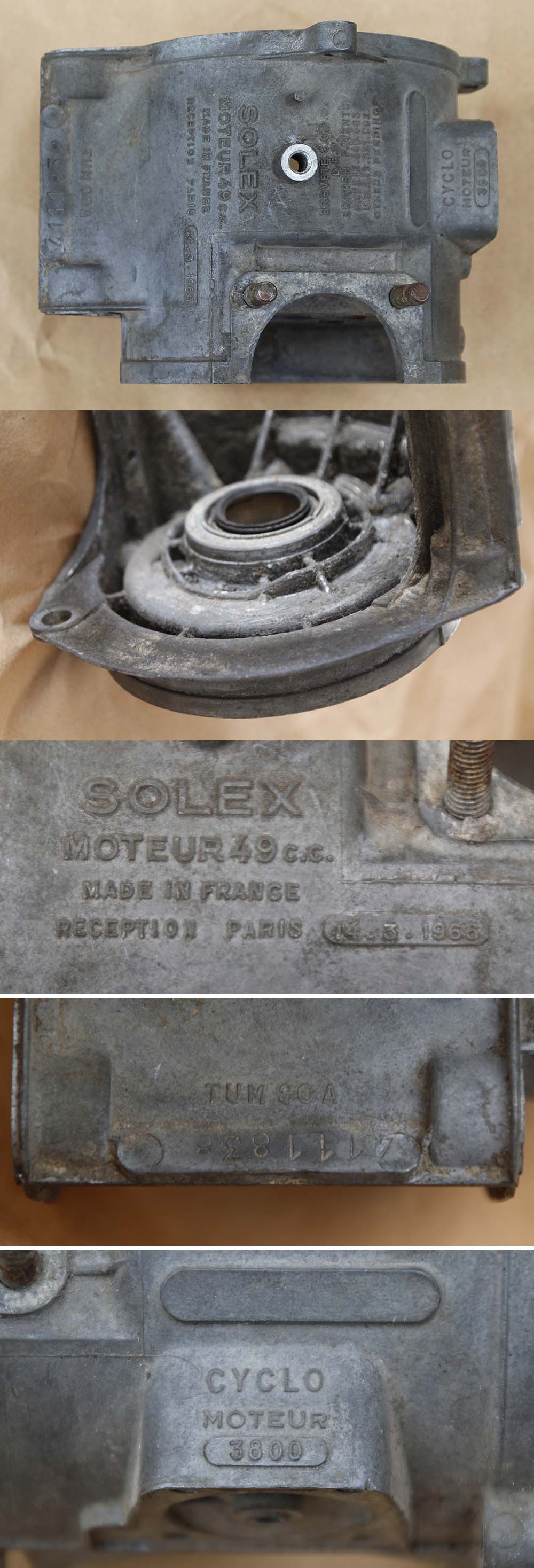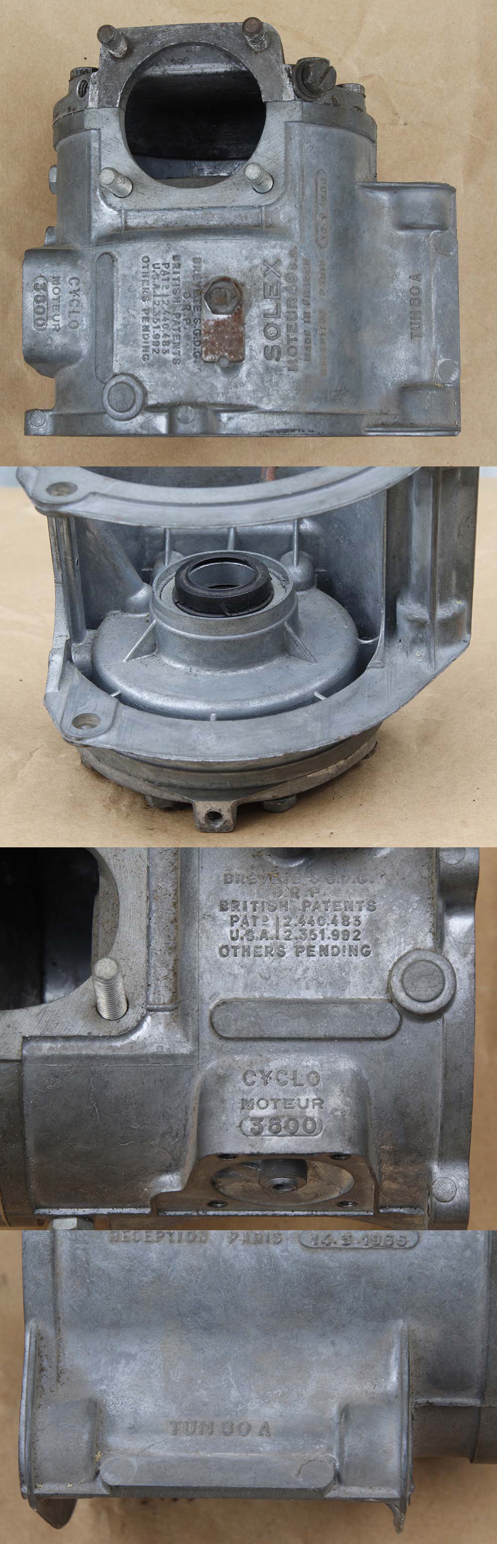 Ce carter est bien estampillé "3800", et il porte un numéro bien inférieur à 3 820 001... Puisqu'il est dans les 150 premiers numéros. A noter la date d'homologation indiquée au 20 octobre 1962, date d'homologation du S 2200 (lui même sorti dès juin 1961, plus d'un an avant son homologation...)
