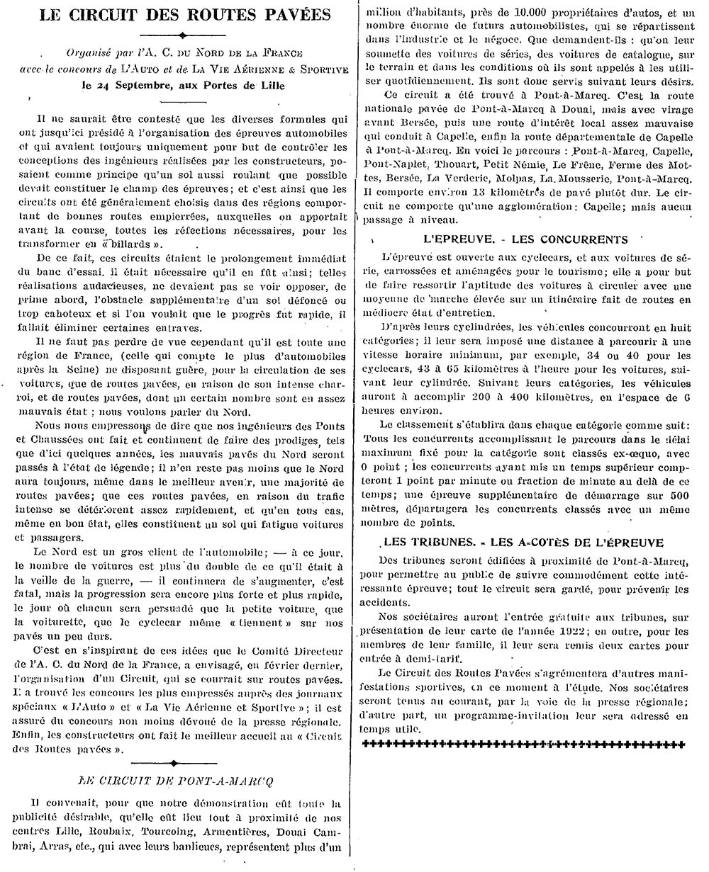 Homologuée le 5 mai 1922 à Valenciennes