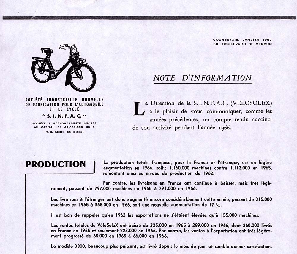 Une note d'information destinée au personnel de l'usine et datée de janvier 1967, annonce une livraison du S 3800 depuis juin 1966.