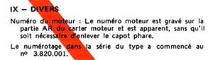 Le certificat d'homologation daté du 14 mars 1966 indique comme début de série, le N° 3 820 001.