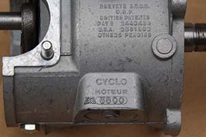 Ce carter est bien estampillé "3800", et il porte un numéro bien inférieur à 3 820 001... Puisqu'il est dans les 150 premiers numéros. A noter la date d'homologation indiquée au 20 octobre 1962, date d'homologation du S 2200 (lui même sorti dès juin 1961, plus d'un an avant son homologation...)