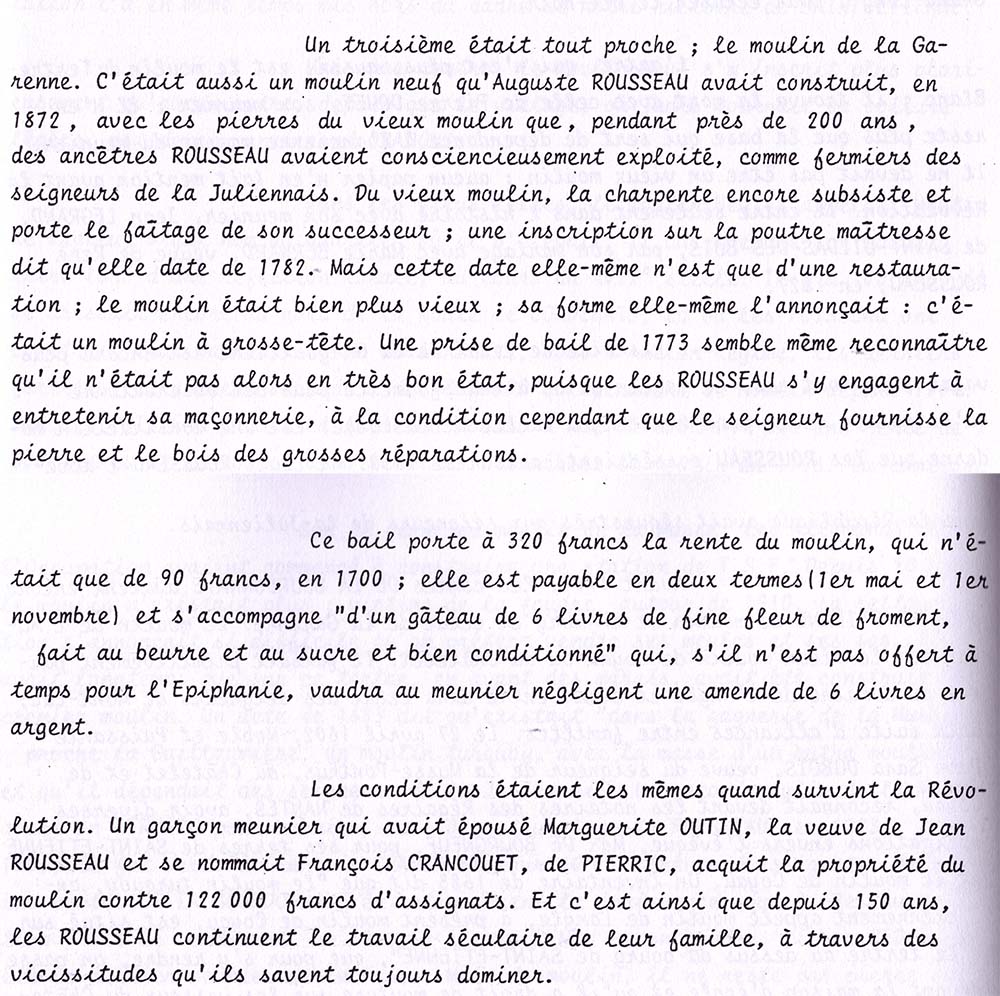• 1943 - 1963 : regroupement Maison et moulin : Auguste Rousseau époux Huon (à la Garenne), nuppropriété ( ?) par Auguste Rousseau époux Cremet (à la Gargouillère)